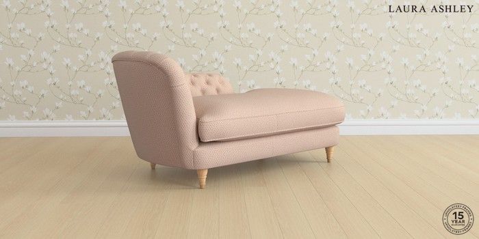 7.3.1 Buy Hathersage by Laura Ashley Chaise Longue Right Hand Melbreak Geo Chalk Pink Low Turned - Light Oak from the Seasons online shop Click here to use our website with more accessibility support, for example screen readers