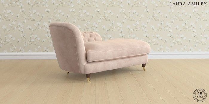 7.3.1 Buy Hathersage by Laura Ashley Chaise Longue Right Hand Orla Chalk Pink Low Brass Castor - Chestnut from the Seasons online shop Click here to use our website with more accessibility support, for example screen readers