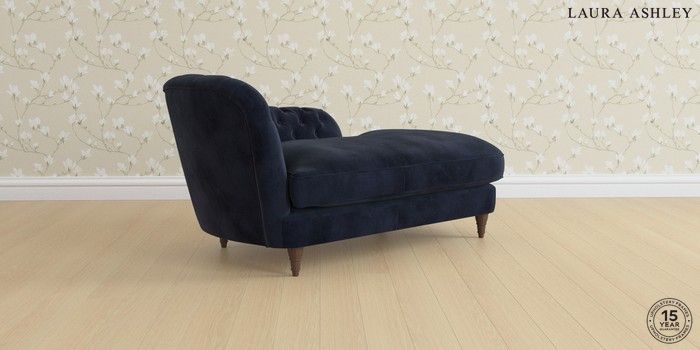7.3.1 Buy Hathersage by Laura Ashley Chaise Longue Right Hand Orla Midnight Navy Low Turned - Chestnut from the Seasons online shop Click here to use our website with more accessibility support, for example screen readers