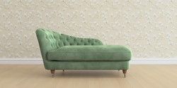 7.3.1 Buy Hathersage by Laura Ashley Chaise Longue Right Hand Orla Pale Hedgerow Green Low Chrome Castor - Teak from the Seasons online shop Click here to use our website with more accessibility support, for example screen readers