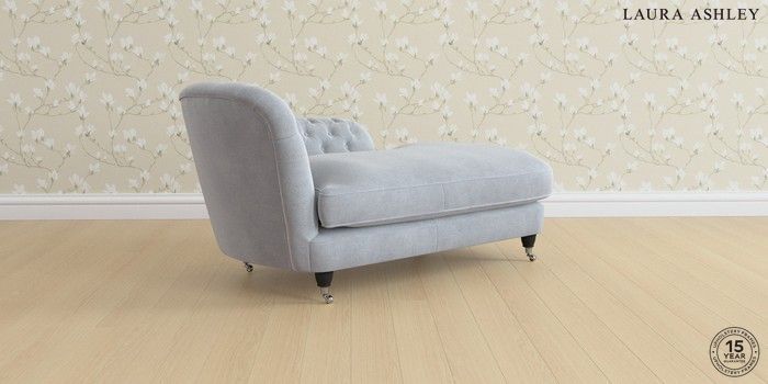7.3.1 Buy Hathersage by Laura Ashley Chaise Longue Right Hand Peyton Powder Blue Low Chrome Castor - Black from the Seasons online shop Click here to use our website with more accessibility support, for example screen readers