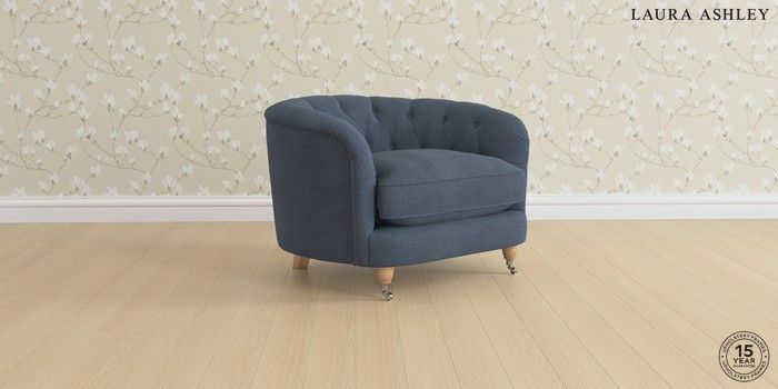 7.3.1 Buy Hathersage by Laura Ashley Snuggle Lundar Chenille Navy Blue Low Chrome Castor - Light Oak from the Seasons online shop Click here to use our website with more accessibility support, for example screen readers