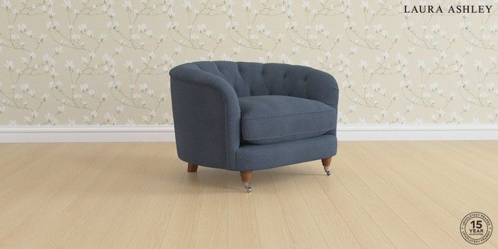 7.3.1 Buy Hathersage by Laura Ashley Snuggle Lundar Chenille Navy Blue Low Chrome Castor - Teak from the Seasons online shop Click here to use our website with more accessibility support, for example screen readers