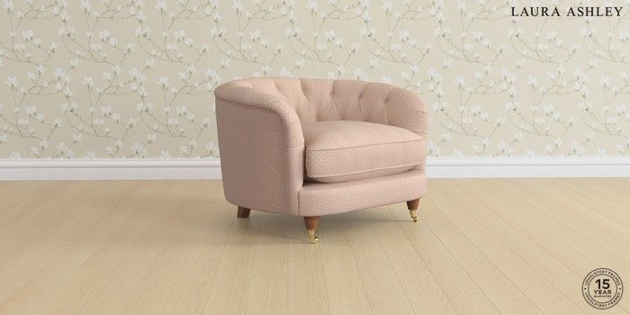 7.3.1 Buy Hathersage by Laura Ashley Snuggle Melbreak Geo Chalk Pink Low Brass Castor - Teak from the Seasons online shop Click here to use our website with more accessibility support, for example screen readers