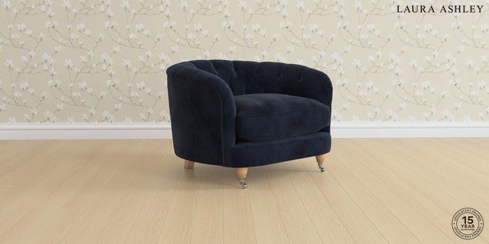 7.3.1 Buy Hathersage by Laura Ashley Snuggle Orla Midnight Navy Low Chrome Castor - Light Oak from the Seasons online shop Click here to use our website with more accessibility support, for example screen readers