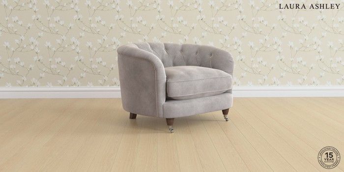 7.3.1 Buy Hathersage by Laura Ashley Snuggle Orla Pale Steel Grey Low Chrome Castor - Chestnut from the Seasons online shop Click here to use our website with more accessibility support, for example screen readers