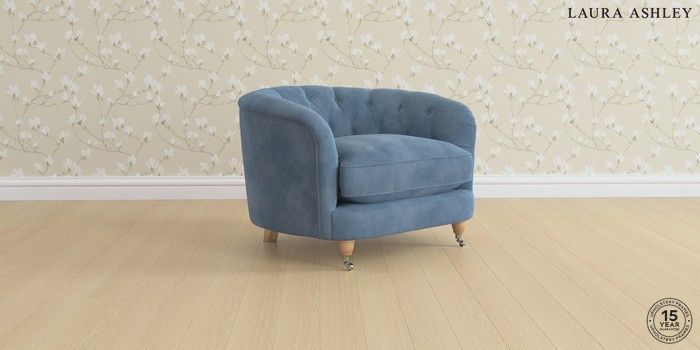 7.3.1 Buy Hathersage by Laura Ashley Snuggle Orla Seaspray Blue Low Chrome Castor - Light Oak from the Seasons online shop Click here to use our website with more accessibility support, for example screen readers
