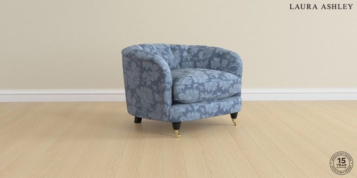7.3.1 Buy Hathersage by Laura Ashley Snuggle Tamara Dusky Seaspray Blue Low Brass Castor - Black from the Seasons online shop Click here to use our website with more accessibility support, for example screen readers