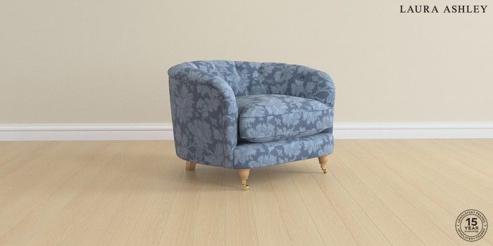 7.3.1 Buy Hathersage by Laura Ashley Snuggle Tamara Dusky Seaspray Blue Low Brass Castor - Light Oak from the Seasons online shop Click here to use our website with more accessibility support, for example screen readers