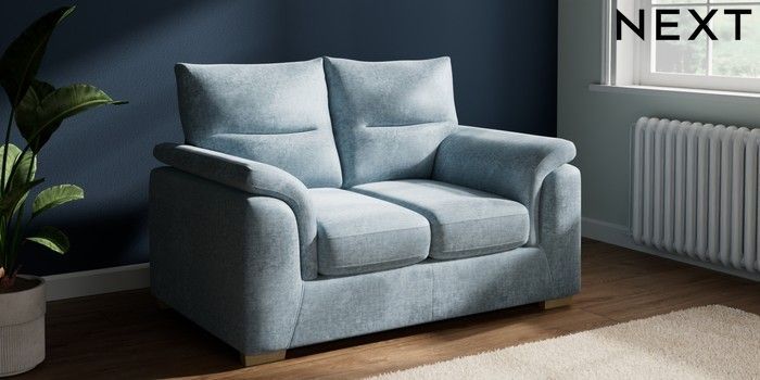 7.2.10 Buy Hayden Highback 2 Seater Small Sofa Plush Chenille Light Blue Slim Block - Light from the Seasons online shop Click here to use our website with more accessibility support, for example screen readers
