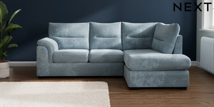 7.2.10 Buy Hayden Highback Medium Corner Chaise - Right Hand Plush Chenille Light Blue Slim Block - Dark from the Seasons online shop Click here to use our website with more accessibility support, for example screen readers