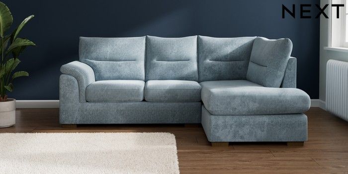 7.2.10 Buy Hayden Highback Medium Corner Chaise - Right Hand Plush Chenille Light Blue Slim Block - Mid from the Seasons online shop Click here to use our website with more accessibility support, for example screen readers