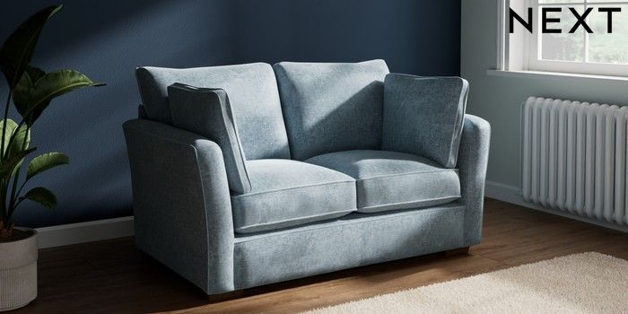 7.2.10 Buy Heath Highback 2 Seater Small Sofa Plush Chenille Light Blue Block - Mid from the Seasons online shop Click here to use our website with more accessibility support, for example screen readers