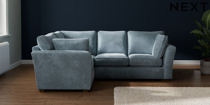 7.2.10 Buy Heath Highback Medium Corner Sofa - Left Hand Plush Chenille Light Blue Block - Mid from the Seasons online shop Click here to use our website with more accessibility support, for example screen readers