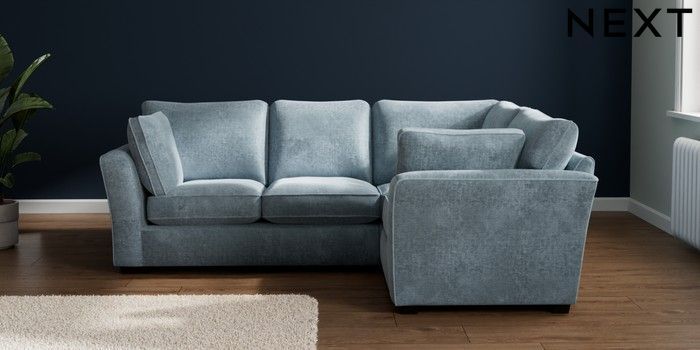 7.2.10 Buy Heath Highback Medium Corner Sofa - Right Hand Plush Chenille Light Blue Block - Dark from the Seasons online shop Click here to use our website with more accessibility support, for example screen readers