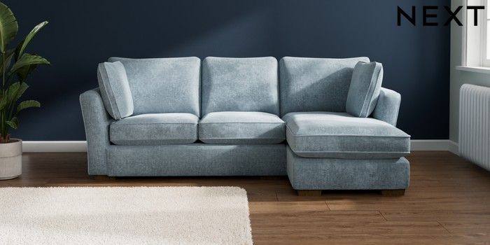 7.2.10 Buy Heath Highback Medium Sofa Chaise - Right Hand Plush Chenille Light Blue Block - Mid from the Seasons online shop Click here to use our website with more accessibility support, for example screen readers