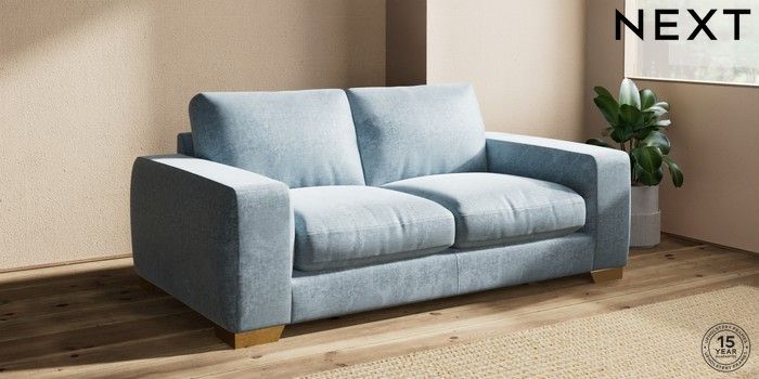 7.2.10 Buy Houghton Deep Relaxed Sit 3 Seater Small Sofa Plush Chenille Light Blue Large Square Angle - Brushed Brass from the Seasons online shop Click here to use our website with more accessibility support, for example screen readers