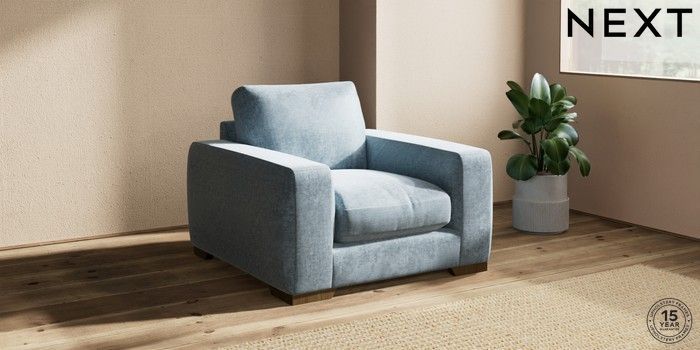 7.2.10 Buy Houghton Deep Relaxed Sit Armchair Plush Chenille Light Blue Large Square Angle - Mid from the Seasons online shop Click here to use our website with more accessibility support, for example screen readers
