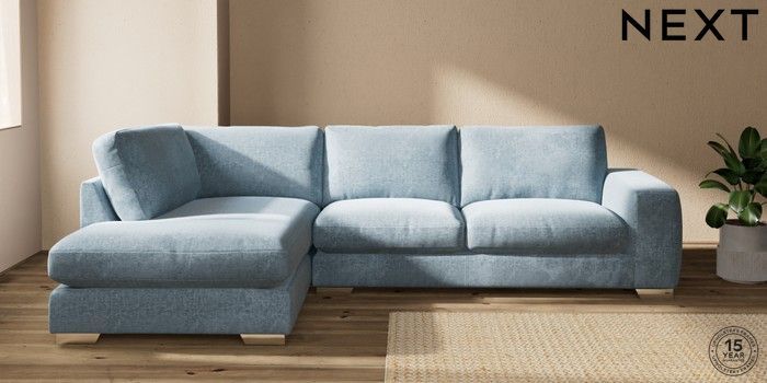 7.3.1 Buy Houghton Deep Relaxed Sit Large Corner Chaise - Left Hand Plush Chenille Light Blue Large Square Angle - Chrome Metal from the Seasons online shop Click here to use our website with more accessibility support, for example screen readers
