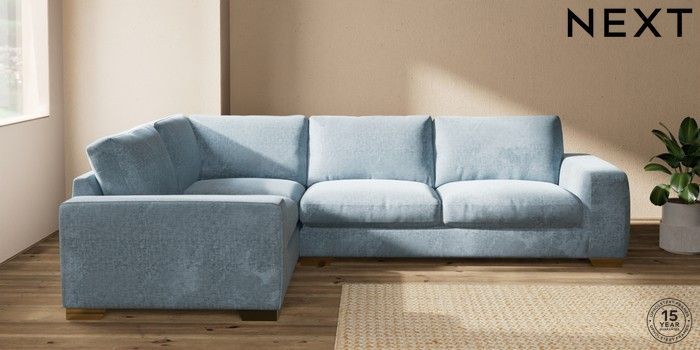7.2.10 Buy Houghton Deep Relaxed Sit Large Corner Sofa - Left Hand Plush Chenille Light Blue Large Square Angle - Brushed Brass from the Seasons online shop Click here to use our website with more accessibility support, for example screen readers