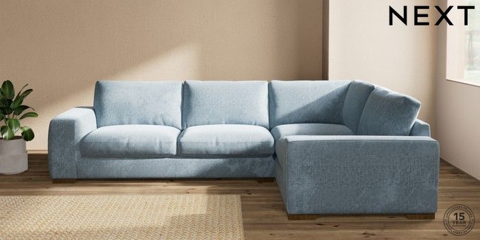 7.2.10 Buy Houghton Deep Relaxed Sit Large Corner Sofa - Right Hand Plush Chenille Light Blue Large Square Angle - Mid from the Seasons online shop Click here to use our website with more accessibility support, for example screen readers