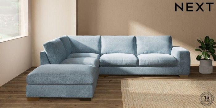 7.2.10 Buy Houghton Deep Relaxed Sit Large Open End Corner Chaise - Left Hand Plush Chenille Light Blue Large Square Angle - Brushed Brass from the Seasons online shop Click here to use our website with more accessibility support, for example screen readers