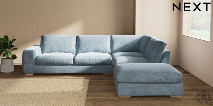 7.3.1 Buy Houghton Deep Relaxed Sit Large Open End Corner Chaise - Right Hand Plush Chenille Light Blue Large Square Angle - Chrome Metal from the Seasons online shop Click here to use our website with more accessibility support, for example screen readers