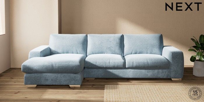 7.2.10 Buy Houghton Deep Relaxed Sit Large Sofa Chaise - Left Hand Plush Chenille Light Blue Large Square Angle - Chrome Metal from the Seasons online shop Click here to use our website with more accessibility support, for example screen readers
