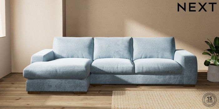 7.2.10 Buy Houghton Deep Relaxed Sit Large Sofa Chaise - Left Hand Plush Chenille Light Blue Large Square Angle - Mid from the Seasons online shop Click here to use our website with more accessibility support, for example screen readers
