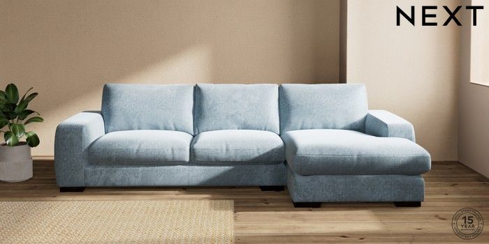 7.2.10 Buy Houghton Deep Relaxed Sit Large Sofa Chaise - Right Hand Plush Chenille Light Blue Large Square Angle - Dark from the Seasons online shop Click here to use our website with more accessibility support, for example screen readers