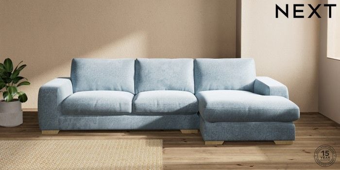 7.2.10 Buy Houghton Deep Relaxed Sit Large Sofa Chaise - Right Hand Plush Chenille Light Blue Large Square Angle - Light from the Seasons online shop Click here to use our website with more accessibility support, for example screen readers