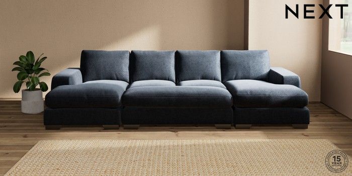 7.3.1 Buy Houghton Deep Relaxed Sit Large - U Shaped Double Chaise with Footstool Boucle Chenille Dark Slate Blue Large Square Angle - Gunmetal from the Seasons online shop Click here to use our website with more accessibility support, for example screen readers
