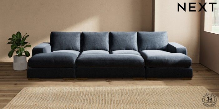 7.3.1 Buy Houghton Deep Relaxed Sit Large - U Shaped Double Chaise with Footstool Boucle Chenille Dark Slate Blue Large Square Angle - Mid from the Seasons online shop Click here to use our website with more accessibility support, for example screen readers