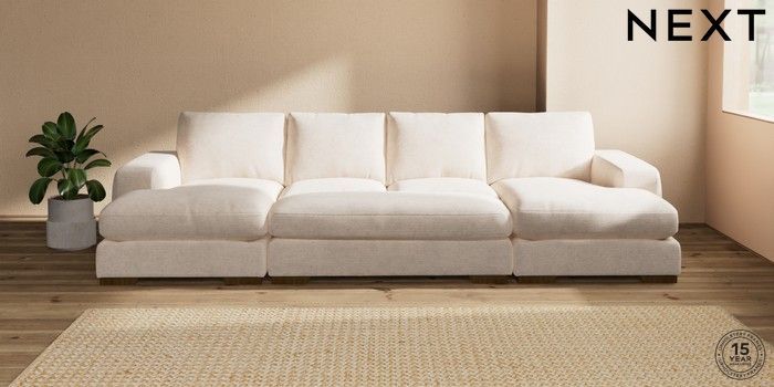 7.3.1 Buy Houghton Deep Relaxed Sit Large - U Shaped Double Chaise with Footstool Boucle Chenille Oyster Large Square Angle - Mid from the Seasons online shop Click here to use our website with more accessibility support, for example screen readers