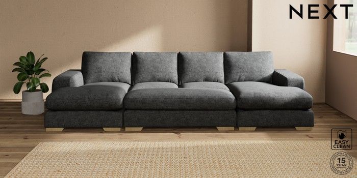 7.3.1 Buy Houghton Deep Relaxed Sit Large - U Shaped Double Chaise with Footstool Boucle Weave Easy Clean Charcoal Grey Large Square Angle - Light from the Seasons online shop Click here to use our website with more accessibility support, for example screen readers