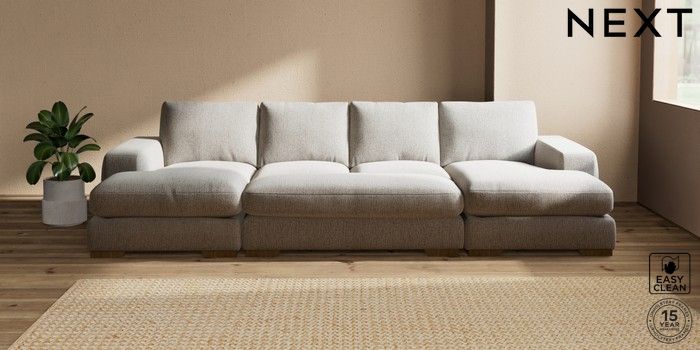 7.3.1 Buy Houghton Deep Relaxed Sit Large - U Shaped Double Chaise with Footstool Chunky Boucle Easy Clean Dove Large Square Angle - Mid from the Seasons online shop Click here to use our website with more accessibility support, for example screen readers