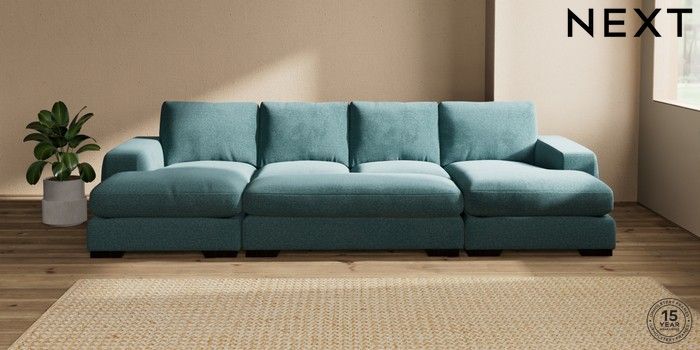 7.3.1 Buy Houghton Deep Relaxed Sit Large - U Shaped Double Chaise with Footstool Chunky Chenille Mid Teal Green Large Square Angle - Dark from the Seasons online shop Click here to use our website with more accessibility support, for example screen readers