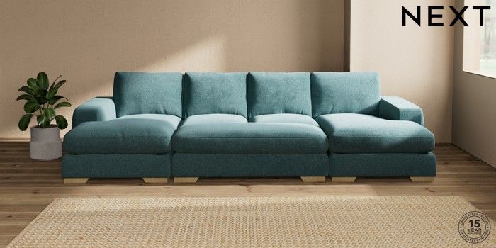7.3.1 Buy Houghton Deep Relaxed Sit Large - U Shaped Double Chaise with Footstool Chunky Chenille Mid Teal Green Large Square Angle - Light from the Seasons online shop Click here to use our website with more accessibility support, for example screen readers
