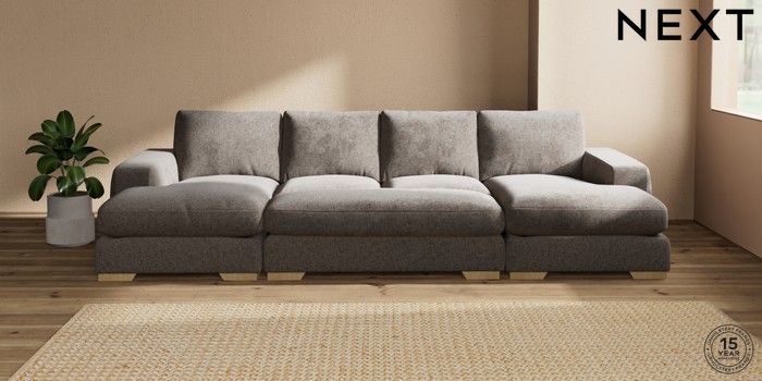7.3.1 Buy Houghton Deep Relaxed Sit Large - U Shaped Double Chaise with Footstool Chunky Chenille Mink Brown Large Square Angle - Light from the Seasons online shop Click here to use our website with more accessibility support, for example screen readers