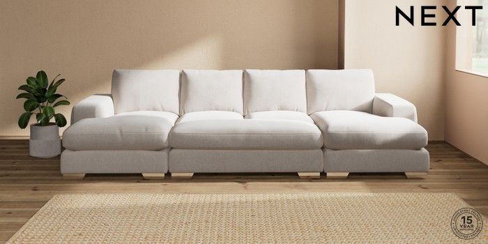 7.3.1 Buy Houghton Deep Relaxed Sit Large - U Shaped Double Chaise with Footstool Chunky Chenille Oyster Large Square Angle - Chrome Metal from the Seasons online shop Click here to use our website with more accessibility support, for example screen readers