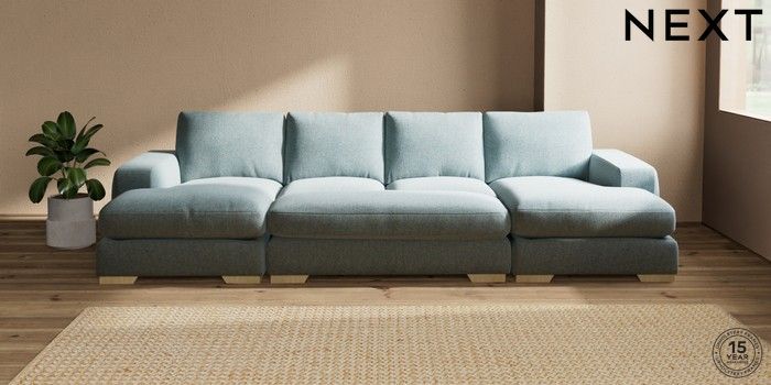 7.3.1 Buy Houghton Deep Relaxed Sit Large - U Shaped Double Chaise with Footstool Chunky Marl Mid Blue Large Square Angle - Light from the Seasons online shop Click here to use our website with more accessibility support, for example screen readers