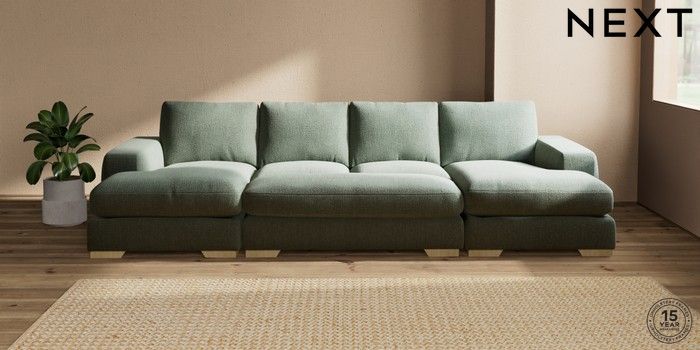 7.2.10 Buy Houghton Deep Relaxed Sit Large - U Shaped Double Chaise with Footstool Chunky Texture Mid Forest Green Large Square Angle - Light from the Seasons online shop Click here to use our website with more accessibility support, for example screen readers