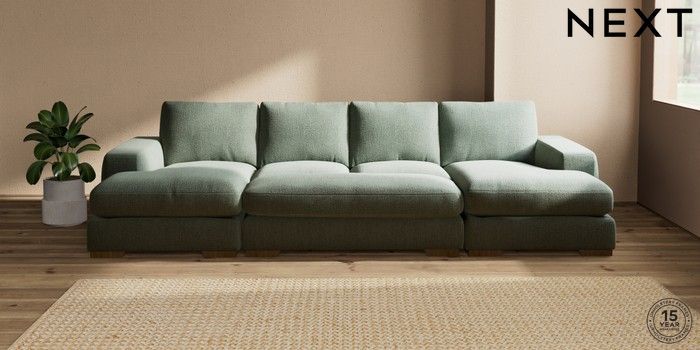 7.3.1 Buy Houghton Deep Relaxed Sit Large - U Shaped Double Chaise with Footstool Chunky Texture Mid Forest Green Large Square Angle - Mid from the Seasons online shop Click here to use our website with more accessibility support, for example screen readers