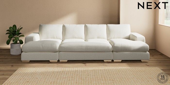 7.3.1 Buy Houghton Deep Relaxed Sit Large - U Shaped Double Chaise with Footstool Chunky Texture Oyster Large Square Angle - Chrome Metal from the Seasons online shop Click here to use our website with more accessibility support, for example screen readers
