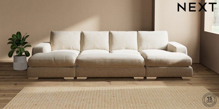 7.3.1 Buy Houghton Deep Relaxed Sit Large - U Shaped Double Chaise with Footstool Chunky Weave Cream Large Square Angle - Chrome Metal from the Seasons online shop Click here to use our website with more accessibility support, for example screen readers