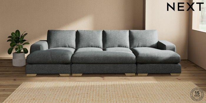7.3.1 Buy Houghton Deep Relaxed Sit Large - U Shaped Double Chaise with Footstool Cotswold Chenille Dark Grey Large Square Angle - Light from the Seasons online shop Click here to use our website with more accessibility support, for example screen readers