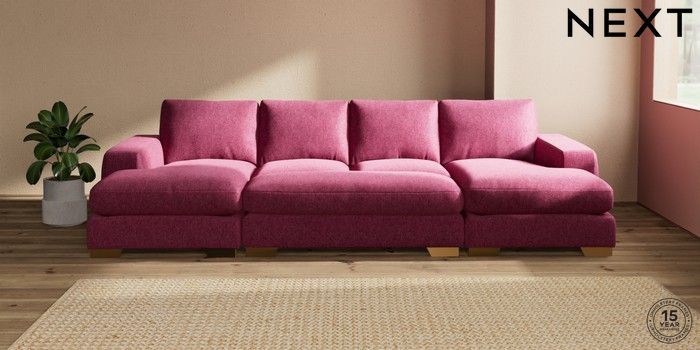 7.3.1 Buy Houghton Deep Relaxed Sit Large - U Shaped Double Chaise with Footstool Cotswold Chenille Dark Raspberry Pink Large Square Angle - Brushed Brass from the Seasons online shop Click here to use our website with more accessibility support, for example screen readers