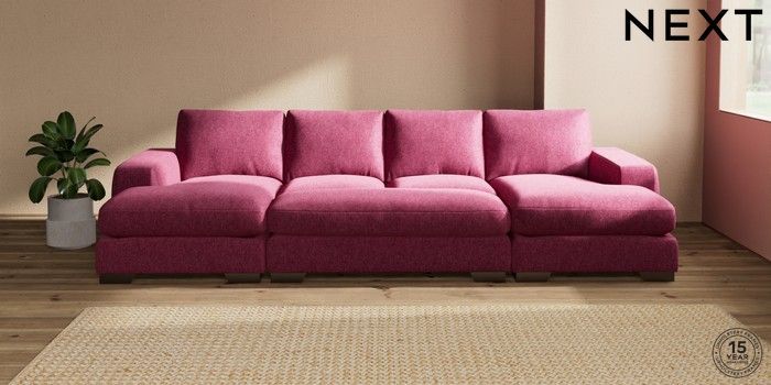 7.3.1 Buy Houghton Deep Relaxed Sit Large - U Shaped Double Chaise with Footstool Cotswold Chenille Dark Raspberry Pink Large Square Angle - Gunmetal from the Seasons online shop Click here to use our website with more accessibility support, for example screen readers