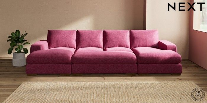 7.3.1 Buy Houghton Deep Relaxed Sit Large - U Shaped Double Chaise with Footstool Cotswold Chenille Dark Raspberry Pink Large Square Angle - Mid from the Seasons online shop Click here to use our website with more accessibility support, for example screen readers