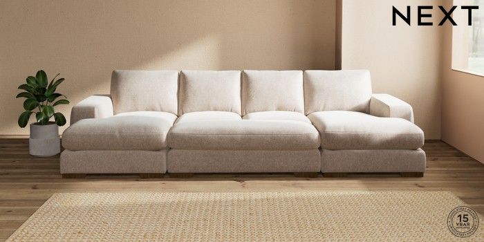 7.3.1 Buy Houghton Deep Relaxed Sit Large - U Shaped Double Chaise with Footstool Cotswold Chenille Light Natural Large Square Angle - Mid from the Seasons online shop Click here to use our website with more accessibility support, for example screen readers